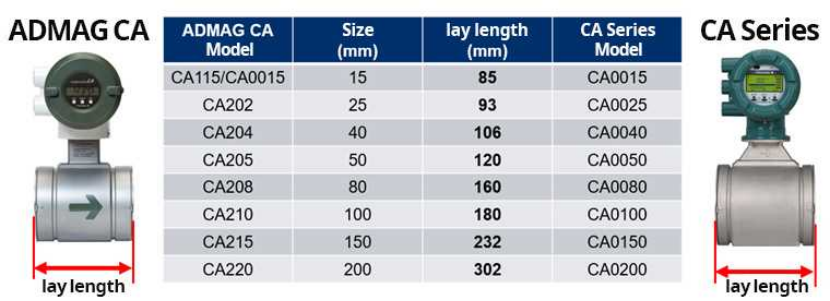 The lay length between the CA Series and ADMAG CA are the same. Therefore, there is no additional cost for customer plumbing.